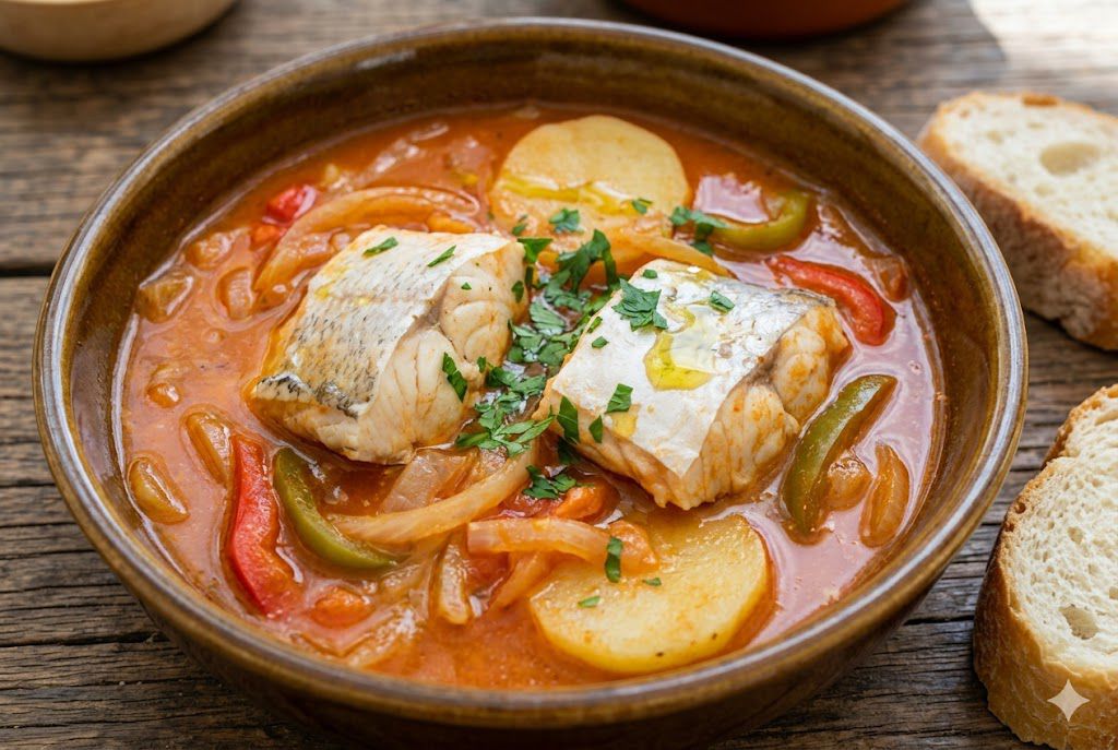La preparación consiste en disponer en una olla profunda (preferentemente de barro o hierro) capas sucesivas de cebolla, morrón, papas y rodajas gruesas de pescado. Se suele hidratar con vino blanco, puré de tomate y un toque de caldo de pescado para generar un jugo corto pero intenso que invite a «mojar el pan».