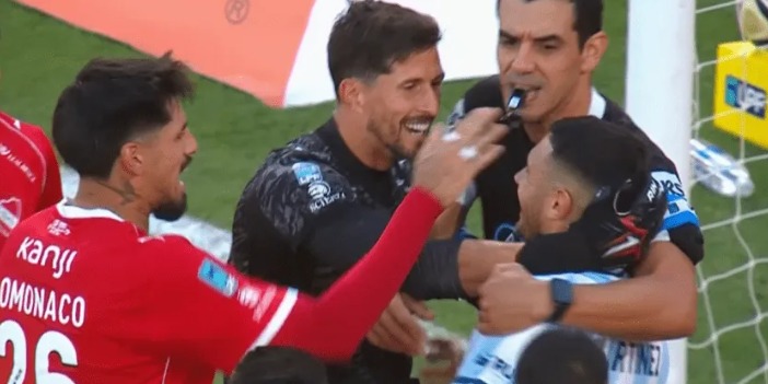 Lejos de un festejo tradicional, Rey y Lomónaco se abalanzaron sobre Martínez para festejarle el error prácticamente abrazándolo. La situación generó una enorme confusión en el campo de juego; mientras los jugadores de Racing interpretaron la acción como una provocación directa y salieron a defender a su compañero, los futbolistas del Rojo manifestaron que fue una descarga emocional ante la importancia de la jugada. El delantero académico, visiblemente afectado por el fallo, quedó en el centro de las críticas tras desperdiciar la oportunidad de inclinar la balanza a favor de su equipo.