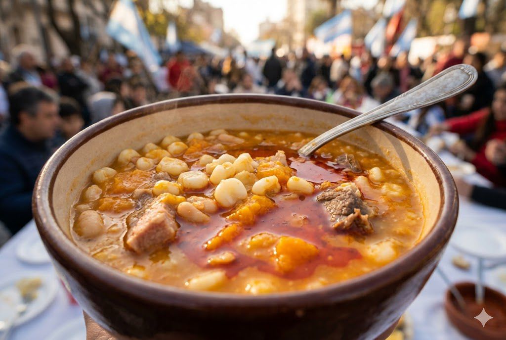 Se sirve con una «quiquirimichi» (salsita picante) por encima, hecha a base de aceite, pimentón, ají molido y cebolla de verdeo. Es un plato que une a la comunidad, cocinado generalmente en ollas gigantes para compartir en plazas o clubes sociales.
