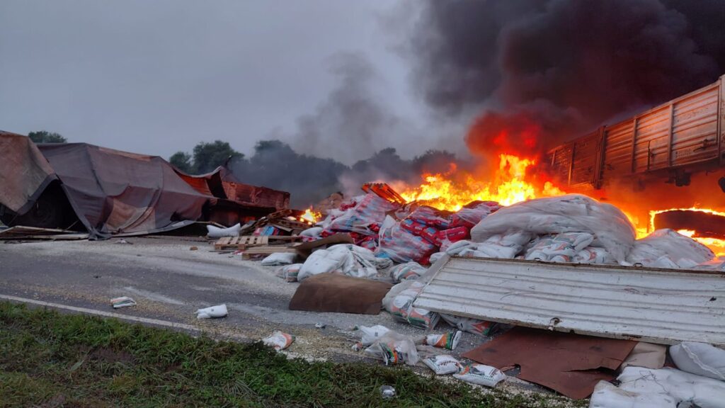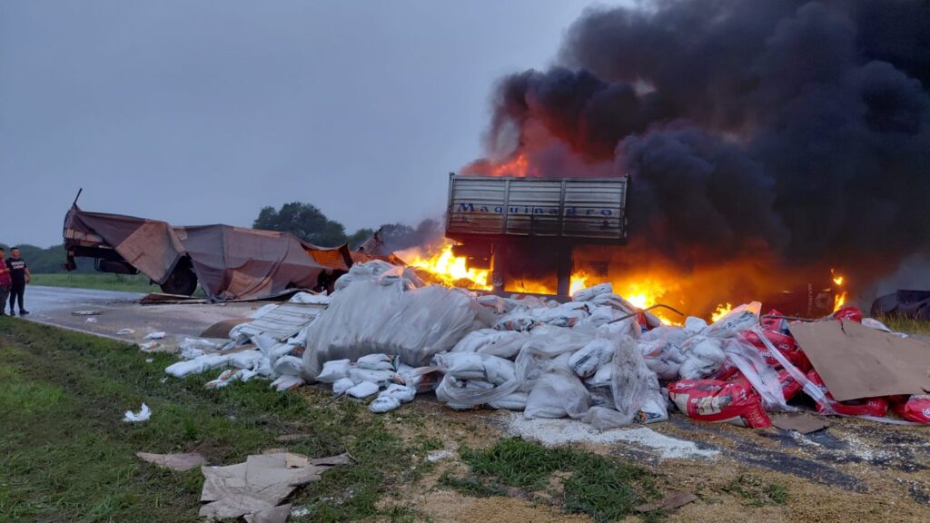Durante la mañana de este miércoles, alrededor de las 07:20 horas, un gravísimo siniestro vial sobre la Ruta Provincial N° 4 conmocionó a la localidad de Villa Berthet. El accidente ocurrió a tan solo cinco kilómetros del casco urbano, en el sector conocido como Cardonal Norte, donde dos camiones que transportaban alimento balanceado impactaron de frente. Tras la colisión, ambas unidades fueron rápidamente consumidas por el fuego, lo que obligó a una intervención urgente de los efectivos de la Comisaría local y equipos de emergencia ante la magnitud del incendio.